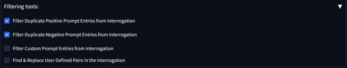 Filter Custom Prompt Entries from Interrogation]: Users can create their own custom filter to remove content from interrogations without modifying the prompt or negative prompt.
