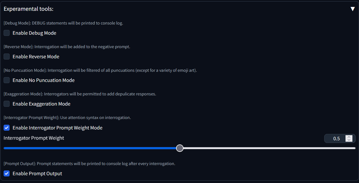 Interrogator Prompt Weight]: This slider will specify the attention weight.- This option is hidden if