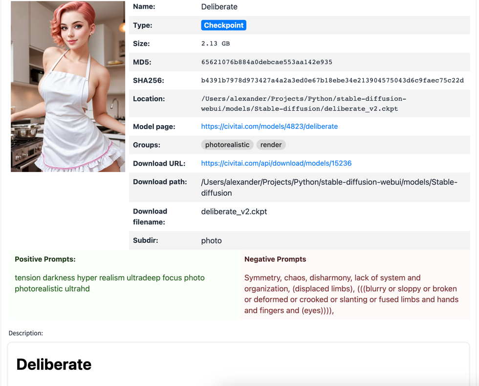 - SHA256 - Model's sha256 hash in case it was downloaded.