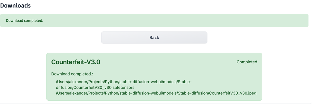 - Downloads models to the model type predefined path or manually selected.
