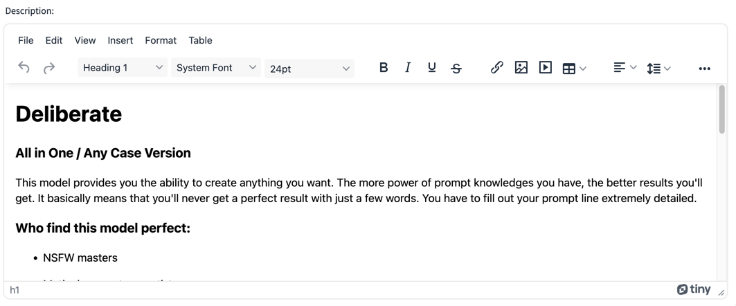 - Add model description and own notes with rich text editor (TinyMCE)