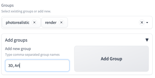 Groups dropdown allows to add groups to the current record from already existing records or add new ones by