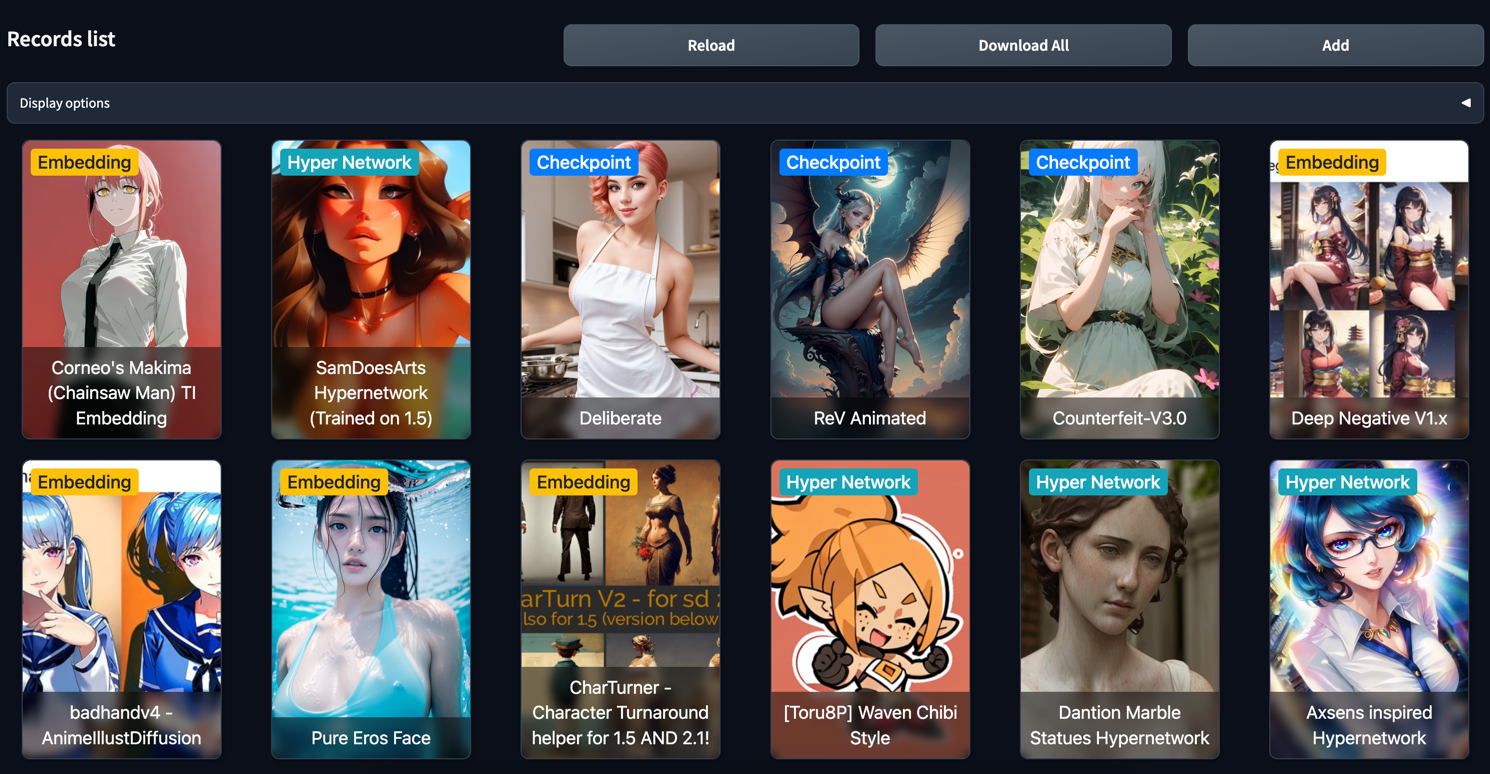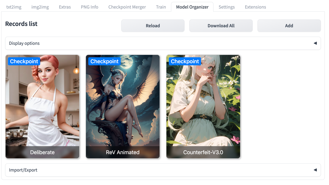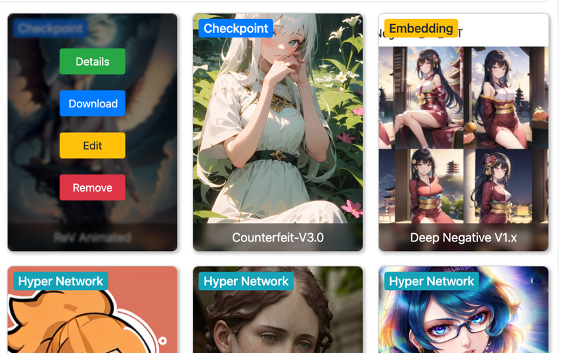 SD Model Organizer is a Stable Diffusion WebUI extension that allows to store and manage own model collections, add information, own notes, previews about model. Easily download from any external direct link or shared file link from Google Drive. Share own models collection with json file or use remote Firestore database to make it available and synced on several devices.