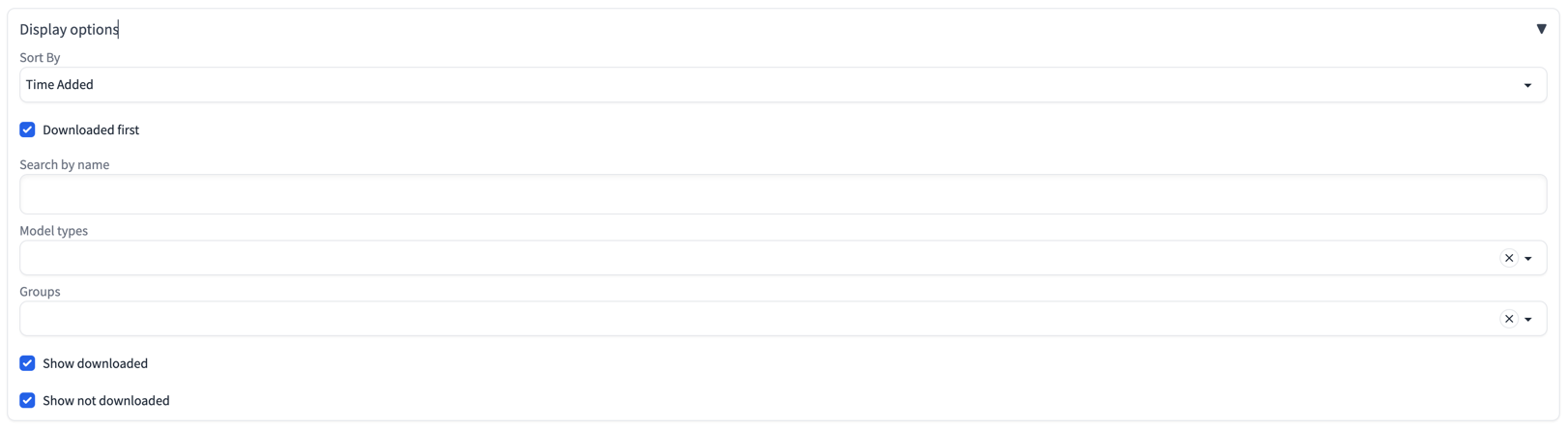 - Model types - Filters records by selected model types.