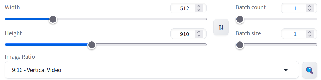 Select an option from the Image Ratio dropdown. This will lock the height slider to the width slider. To unlock the sliders select None from the dropdown. Select the magnifying glass to attempt to identify the Ratio based on the current width and heights.