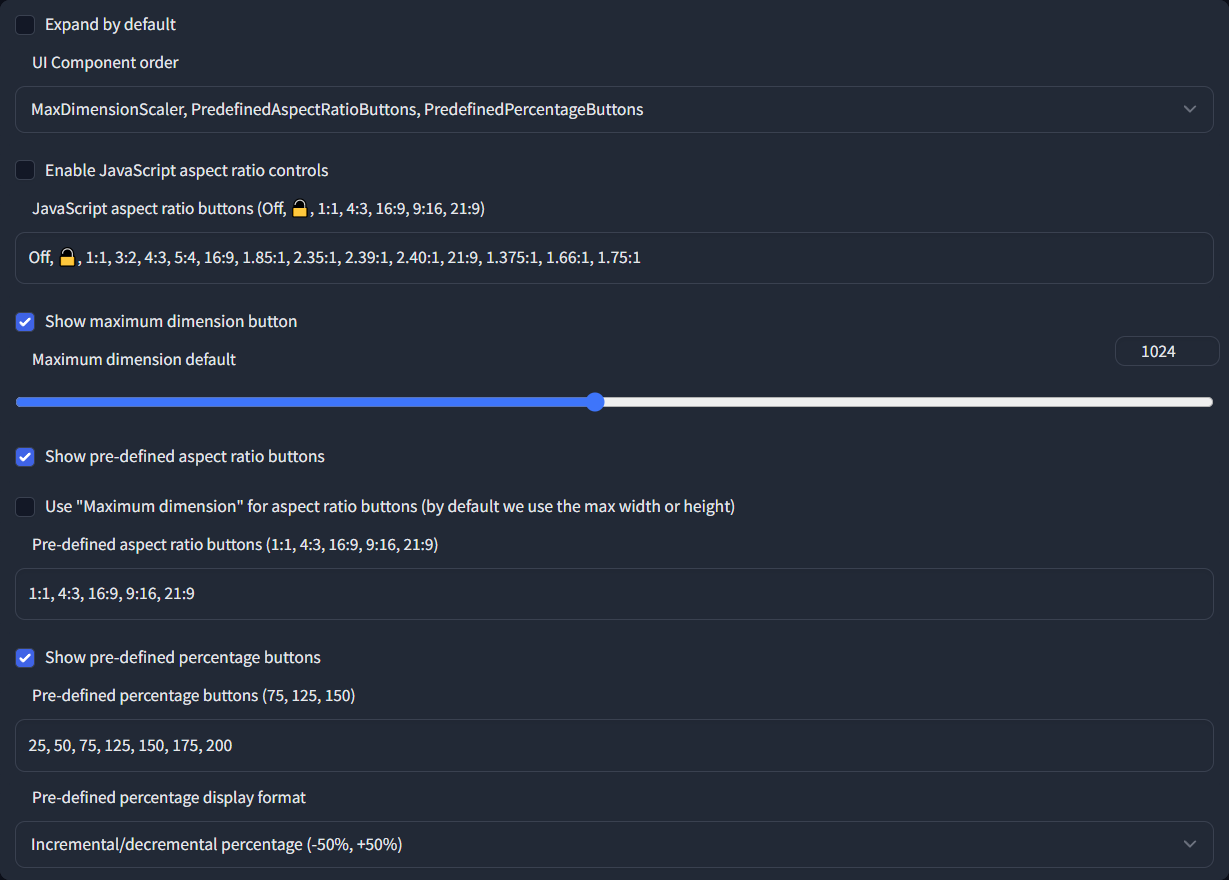 • UI Component order (MaxDimensionScaler, PredefinedAspectRatioButtons, PredefinedPercentageButtons)