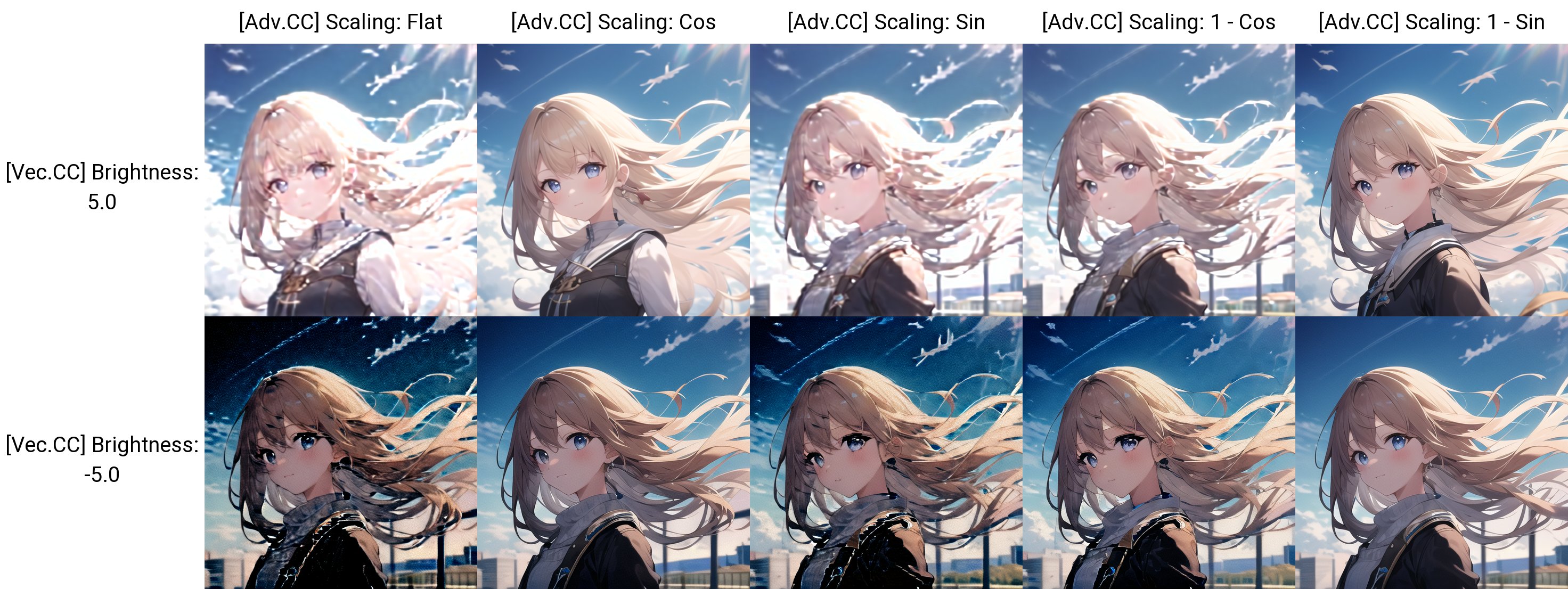 By default, this Extension offsets the noise by the same amount each step. But due to the denoising process, this may produce undesired outcomes such as blurriness at high Brightness or noises at low Brightness. Therefore, I added a scaling option to modify the offset amount throughout the process.