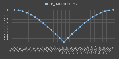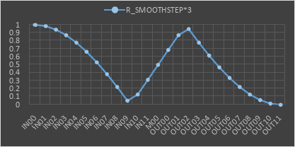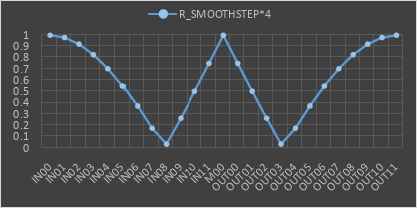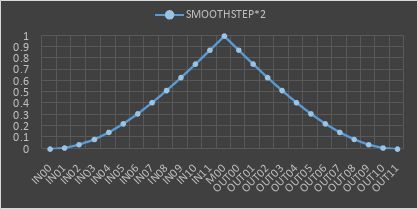 Smoothstep*Q x=a(S)100 & ( when x∈<0;0.5> , y=Q(3x^2-2x^3) when x∈(0.5;1> , y=2-Q(3x^2-2x^3 )