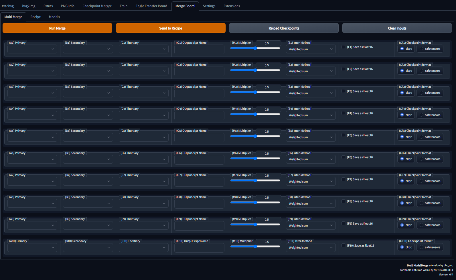 [Multi-Merge](## Multi-Marge) [Merge Recipe](## Recipe) (Import/Export) Checkpoint List
