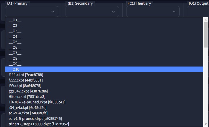 Select checkpoint by Dropdown. You can select Output checkpoint of each lane by variables like __O1__.