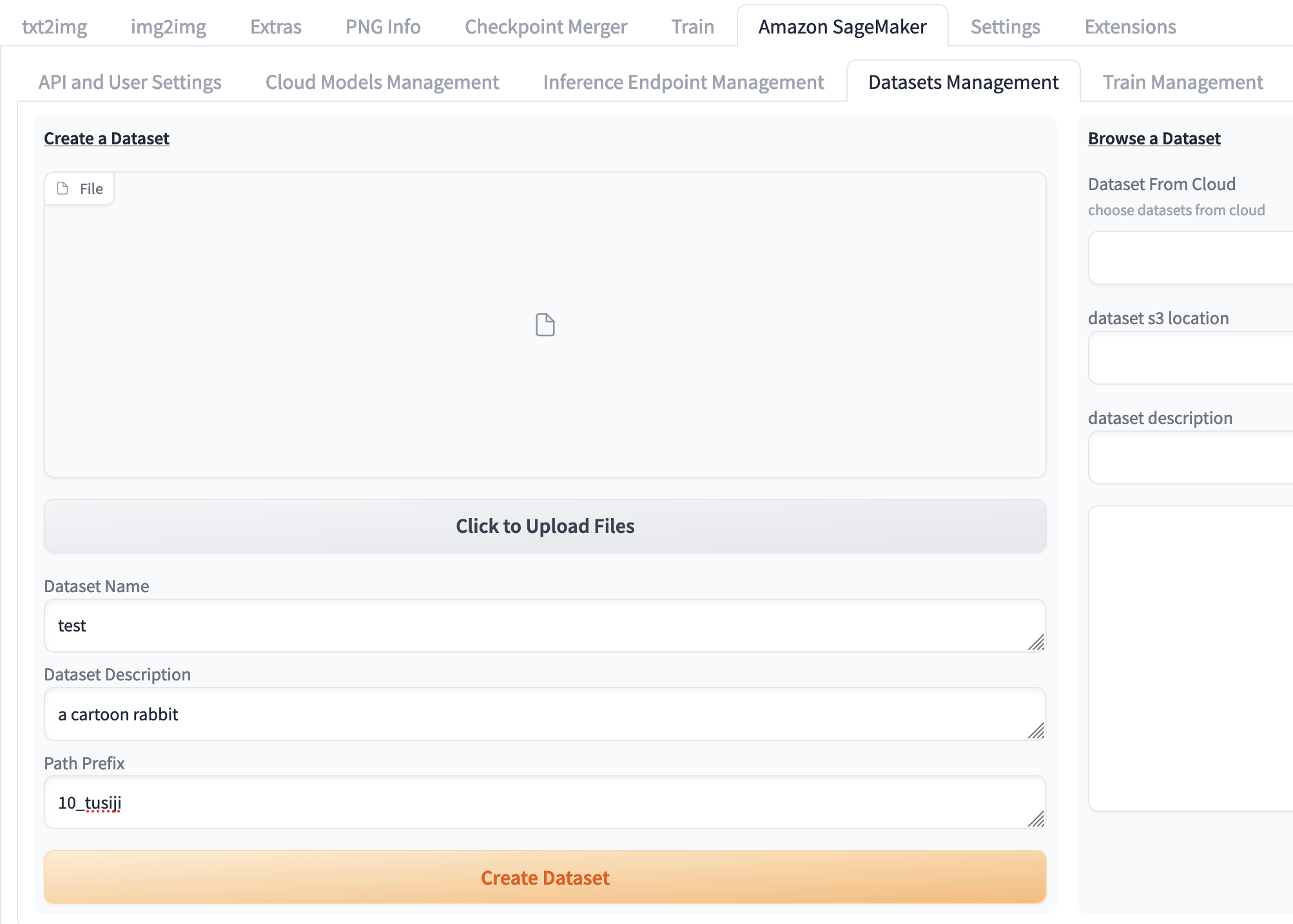 进入 Amazon SageMaker 面板,选择Train Management进入训练面板。 开始训练lora之前需要设置三部分内容:基础模型准备,数据集准备,设置训练参数,下面分别进行介绍。