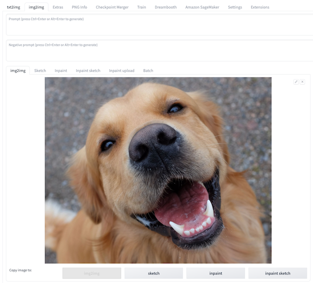 Navigate to tab img2img, find panel Amazon SageMaker Inference.