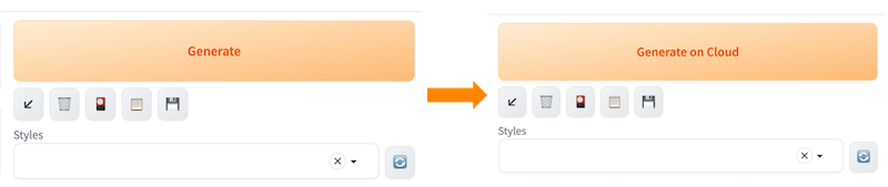 选择云上推理所需要的模型。在Stable Diffusion Checkpoint Used on Cloud列表选择需要云上推理的模型, 则会触发右上角Generate按钮变为Generate on Cloud。