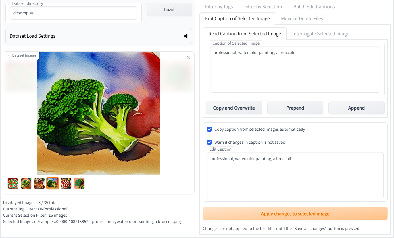 - edit captions individually in "Edit Caption of Selected Image" tab