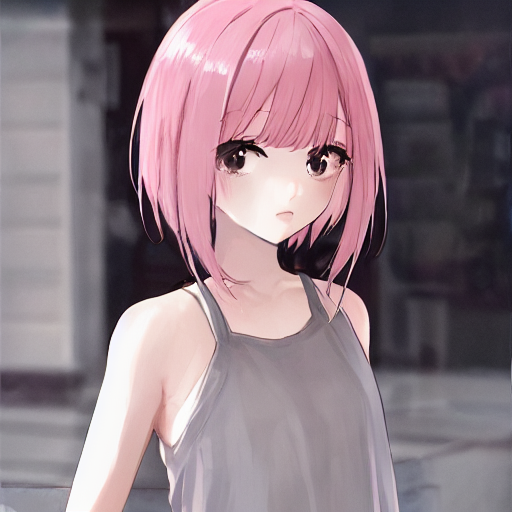 Prompt: a cute girl, pink hair