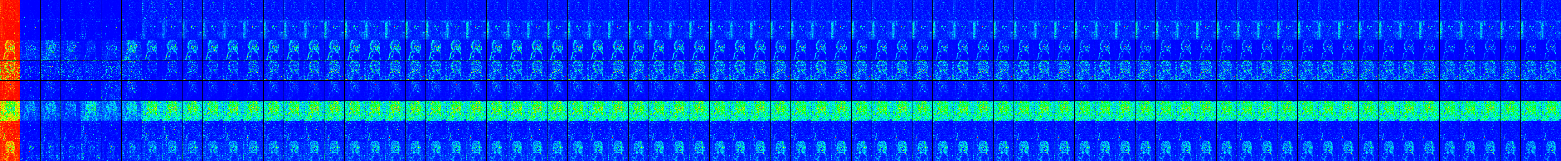 The horizontal axis represents the token position. The beginning token and ending token are inserted, so the 75 images in between represent the influence of each token.