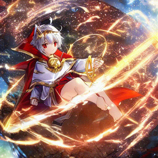 ((masterpiece)), highres, ((girl)), loli, cat ears, light blue hair, red eyes, magical wand, barefoot, [running]